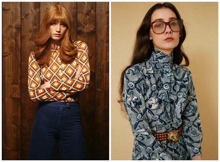 Что касается цветовых сочетаний, то культура хиппи, конечно же, раскрасила 70-е в самые яркие оттенки, но одновременно с этим было популярно и стремление к естественным цветам. Поэтому мы рекомендуем обратить внимание на натуральные, чуть приглушенные тона: бежевый, верблюжья шерсть, мягкие тона зеленого, серый, дымчато-голубой.