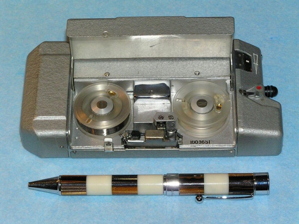 Но это был слишком уж большой размер. Аппарат нужен был такой, который можно спрятать в одежде. В 60-х был создан «Мезон». Крепился под одеждой, но на ремне. Записывал 1,5 часа, но чтобы найти на пленке нужную информацию, ее нужно было полностью перематывать, а это очень долго.