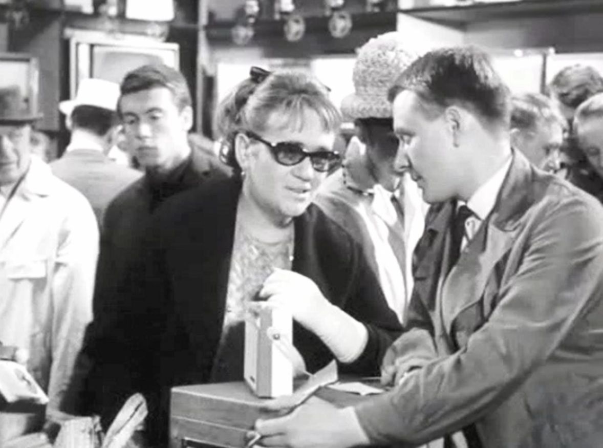 Помните эпизод, когда Дима Семицветов продает магнитофон героине, которую сыграла Галина Волчек, которая произносит фразу: