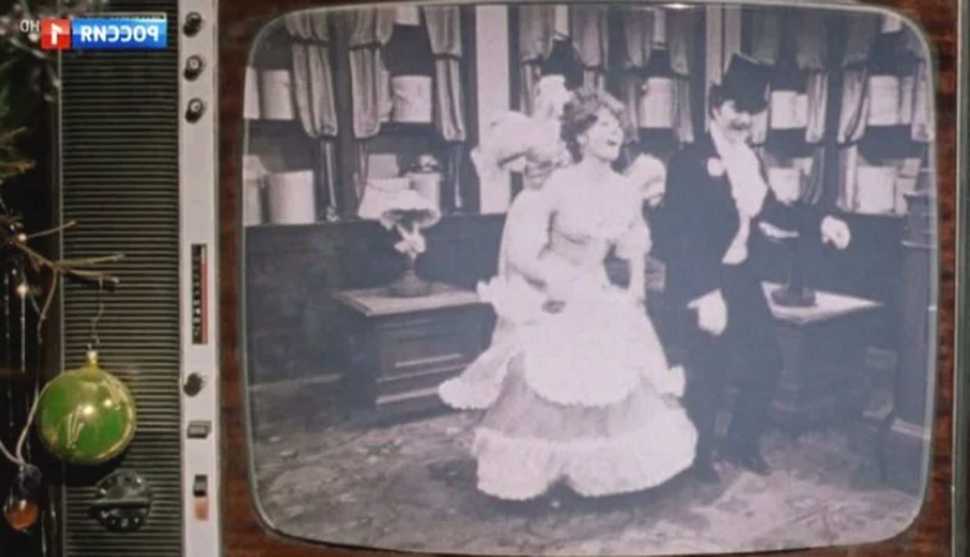Помните сцену: праздничный стол, за которым сидят Надя Шевелёва и Ипполит Георгиевич, а по телевизору показывают комедию «Соломенная шляпка», которую снял режиссер Леонид Квинихидзе и где главные роли сыграли Миронов и Гурченко?