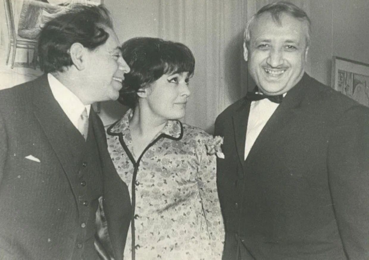 режиссер Василий Катанян, помощница режиссера Елена Спиридонова и народный артист СССР Аркадий Райкин