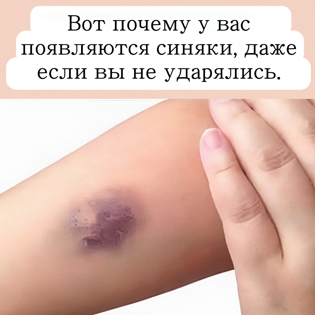 Дефицит витамина С (необходимого для производства коллагена) или витамина К (участвующего в свертывании крови) может сделать кожу более подверженной появлению синяков.