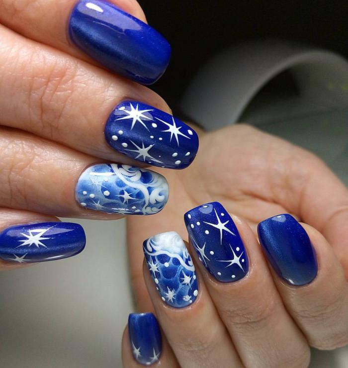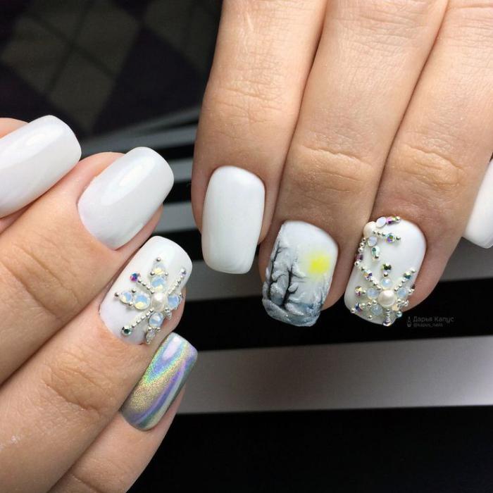 Ну а пока, готовимся к праздникам. Готовимся быть яркими и сияющими как падающий первый снег. Для этого у нас есть проверенный вариант: шикарный маникюр в зимнем стиле. Только посмотрите какие крутые идеи мы собрали здесь! И зимняя тематика в виде снежинок, и блестки со стразами, и втирка с глиттером, все, что только может ассоциироваться с зимой и праздником. Ну что, смотрим?