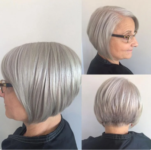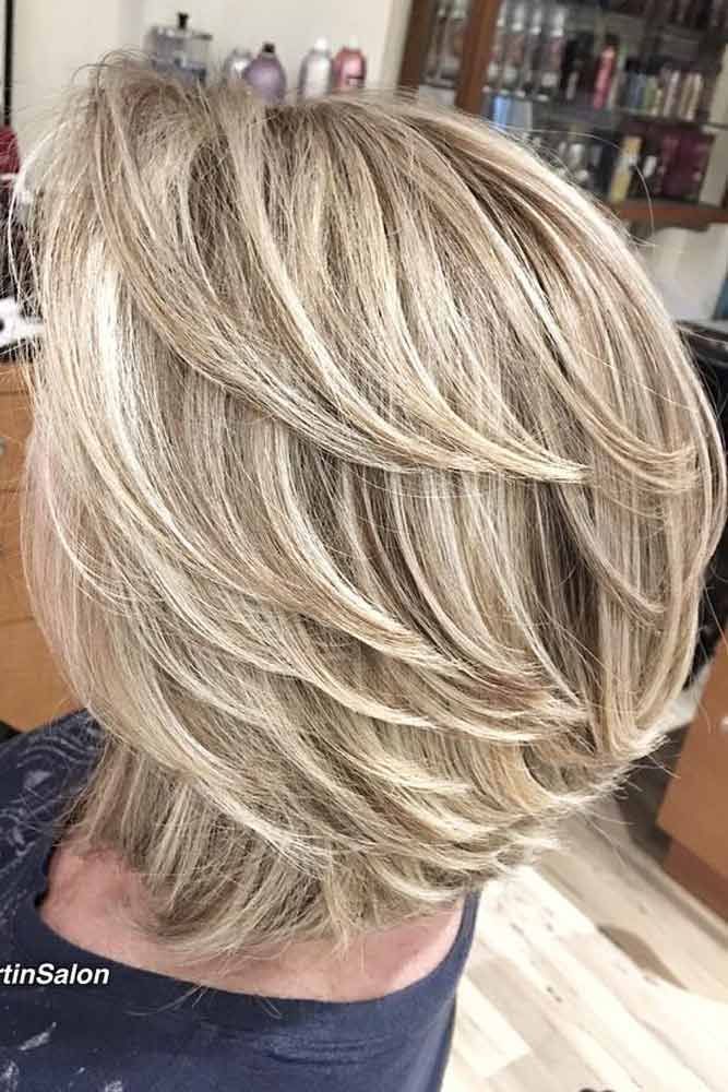 А вот такой вариант стрижки будет отличным для тех женщин, кому уже за 50. Благодаря градуировки, волосы выглядят намного объемнее.