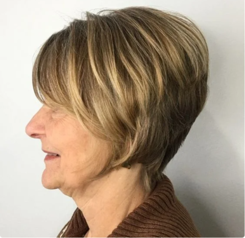 Он характеризуется тем, что в области затылка волосы стригутся коротко, а к лицу постепенно удлиняют. Ей характерны мягкие переходы. Также ее можно дополнить челкой, которая отлично скроет морщинки на лбу.