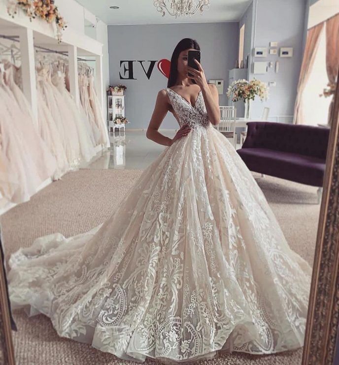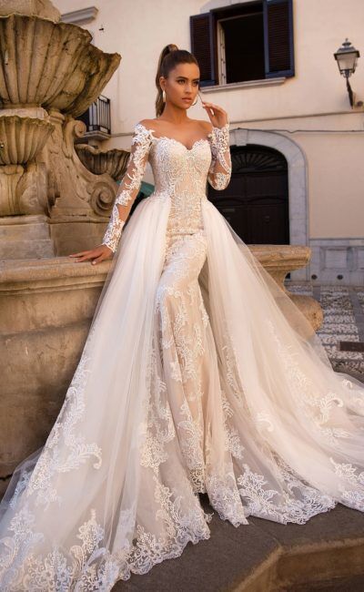 Современные свадебные наряды восхищают красотой и изящностью. Красивая отделка, кружево, изящный силуэт, необычный крой… Это шедевр!