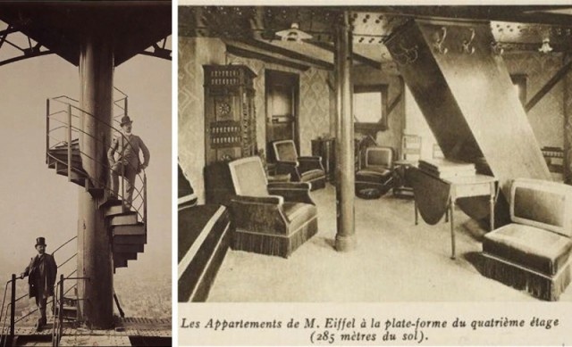 Возможно, чтобы утешить себя и добавить проекту частного, человеческого измерения, Эйфель задумал личное пространство на вершине своего творения. Он попросил архитектора Стефена Совестра, работавшего над оформлением башни, спроектировать на третьем уровне не просто техническое помещение, а целую квартиру.