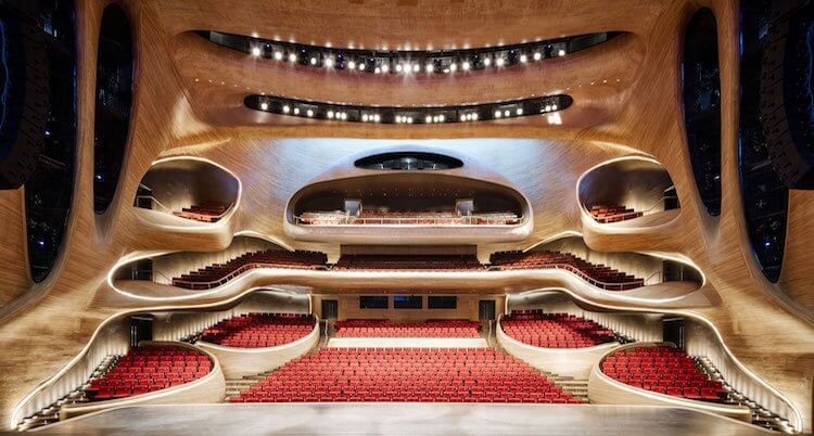 Многие из оперных театров, фотографии которых представлены в этой подборке, построены очень давно. Например, Маркграфский оперный театр в Байройте (Германия) появился между 1746 и 1750 годами. Великолепная ручная роспись его деревянной крыши и хорошо сохранившийся барочный дизайн являются объектами Всемирного наследия ЮНЕСКО. Другие залы, такие как оперный театр в Харбине (Китай) созданы современными архитекторами. Проект харбинского театра разработала пекинская студия MAD. Несмотря на то, что интерьер выполнен в стиле минимализма, основные принципа построения пространства сохранились со времён старых оперных театров с балконами и ложами — звук должен пульсировать внутри замкнутого пространства.