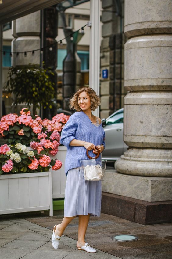 - Голубой цвет идеально дополнит девичью легкость и милую наивность, особенно хорошо смотрится на блондинках. Обрати внимание, что голубой цвет сделает тебя не только воздушной и открытой, но и визуально на несколько лет моложе.