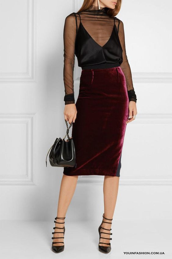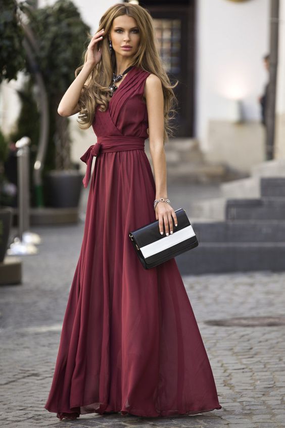 - Бордовая одежда — это некая классика, и при условии правильного комбинирования данный оттенок может подчеркнуть как зрелую женственность, дерзость, так и наивную юность и очарование. Стоит ли говорить, что вечерние платья в оттенке бордо смотрятся потрясающе?