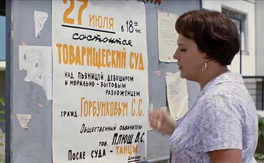 И она же организует товарищеский суд над «пьяницей, дебоширом и морально-бытовым разложенцем» Семёном Семёновичем Горбунковым. В «Бриллиантовой руке» управдом вешает красноречивую афишу предстоящего мероприятия, на которой и видно настоящую фамилию героини: