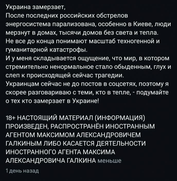 Максим Галкин выступил с эмоциональным обращением к общественности, обратив внимание на тяжёлую ситуацию в Украине. Он написал о том, что страна переживает зиму в условиях отсутствия света и тепла, а тысячи людей вынуждены мерзнуть в собственных домах. Юморист вновь публично выразил поддержку украинскому народу, не изменяя своей позиции, которой придерживается уже несколько лет.