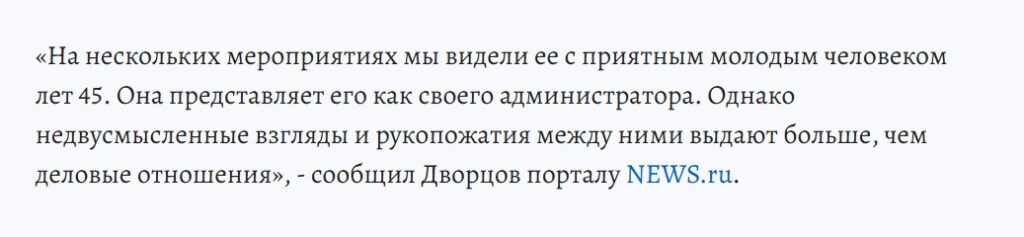 Как оказалось, избранником артистки стал её 45-летний администратор. Он очень заботлив и внимателен к Елене. Мужчина осыпает артистку цветами. Об их романе стало известно, когда мужчина не смог скрывать чувств на публике. Свои отношения пара не афиширует. Но возлюбленный повсюду сопровождает Степаненко.