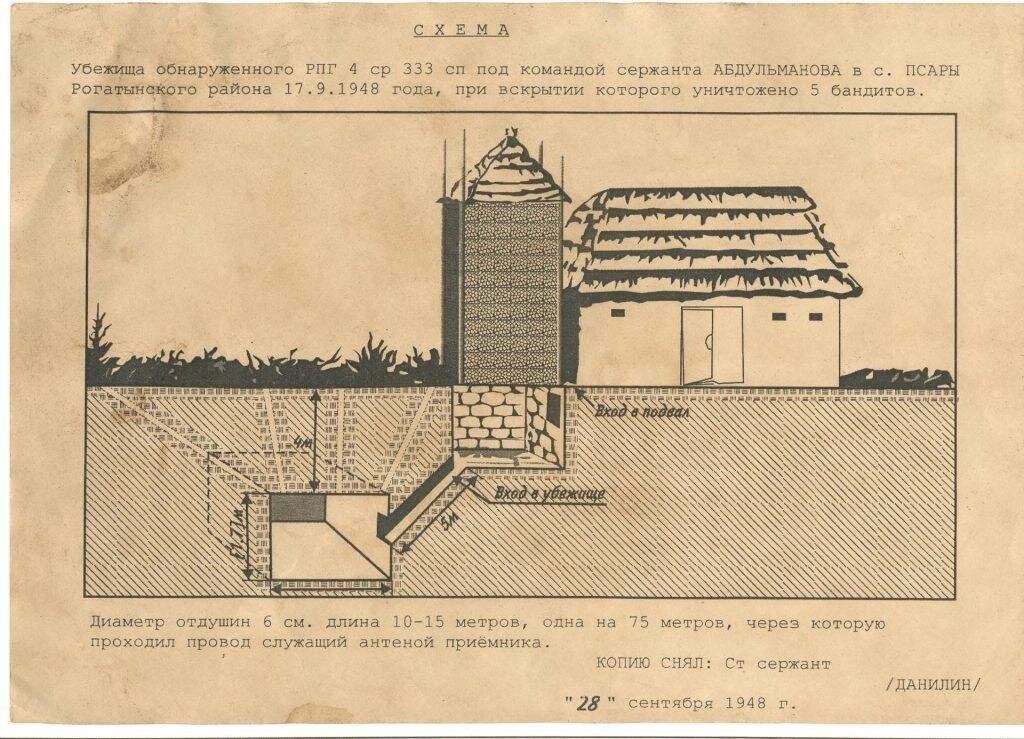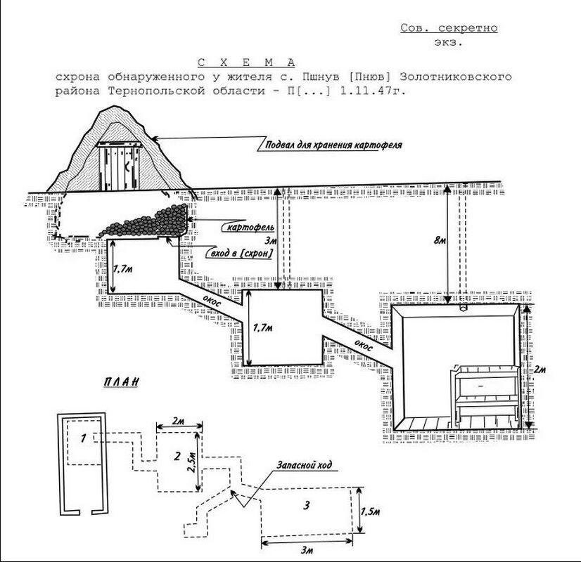 В общем, схрон был оборудована в нужнике, который стоял у местных жителей во дворе. А обнаружили ведь совершенно случайно. Прочесывали деревню после того как получили наводку, что там скрываются бандиты. Везде ведь свои агенты были, и из местных тоже. Указали нам на два предполагаемых дома. Один обыскали вдоль и поперек, вообще ничего, никакой зацепки, хоть и хозяева какие-то странные были. Позже узнали, что хозяйка сотрудничала с бандитами, еду им носила в лес иногда. В общем, пошли второй двор прочесывать и тоже ничего. Вот вообще нигде никакого лаза или чего-то похожего! Собирались уже было уходить, как один боец отошел по нужде. Потом подходит ко мне и говорит: «Командир, смотри, нужник снаружи вроде старый, видно что не сегодня построен. А вот внутри все чисто, как будто им никто никогда не пользовался, подозрительно это, не может такого быть». Пошли мы туда, вскрыли пол, а под ним пустая чистая яма. Стали спускать туда бойца, а там бац, лаз в стенке ямы, который и ведет как раз в схрон. Правда никого там из бандитов не оказалось, оказалось, что ушли еще ночью в лес. Ну а что касается хозяев, то они все эти годы ходили по нужде на огород. Вот и охота же им было такие лишения терпеть ради бандитов?»