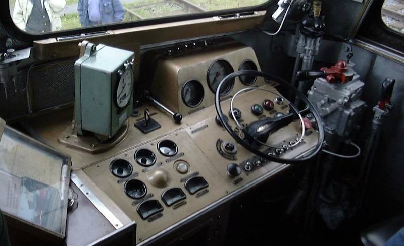 Например, в одном из железнодорожных музеев Дрездена (Германия) можно увидеть кабину старого советского тепловоза, когда-то служившего на территории ГДР. В центре панели управления круглый элемент, напоминающий автомобильный руль. Однако к повороту поезда он, само собой, не имеет отношения.