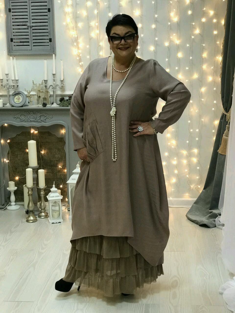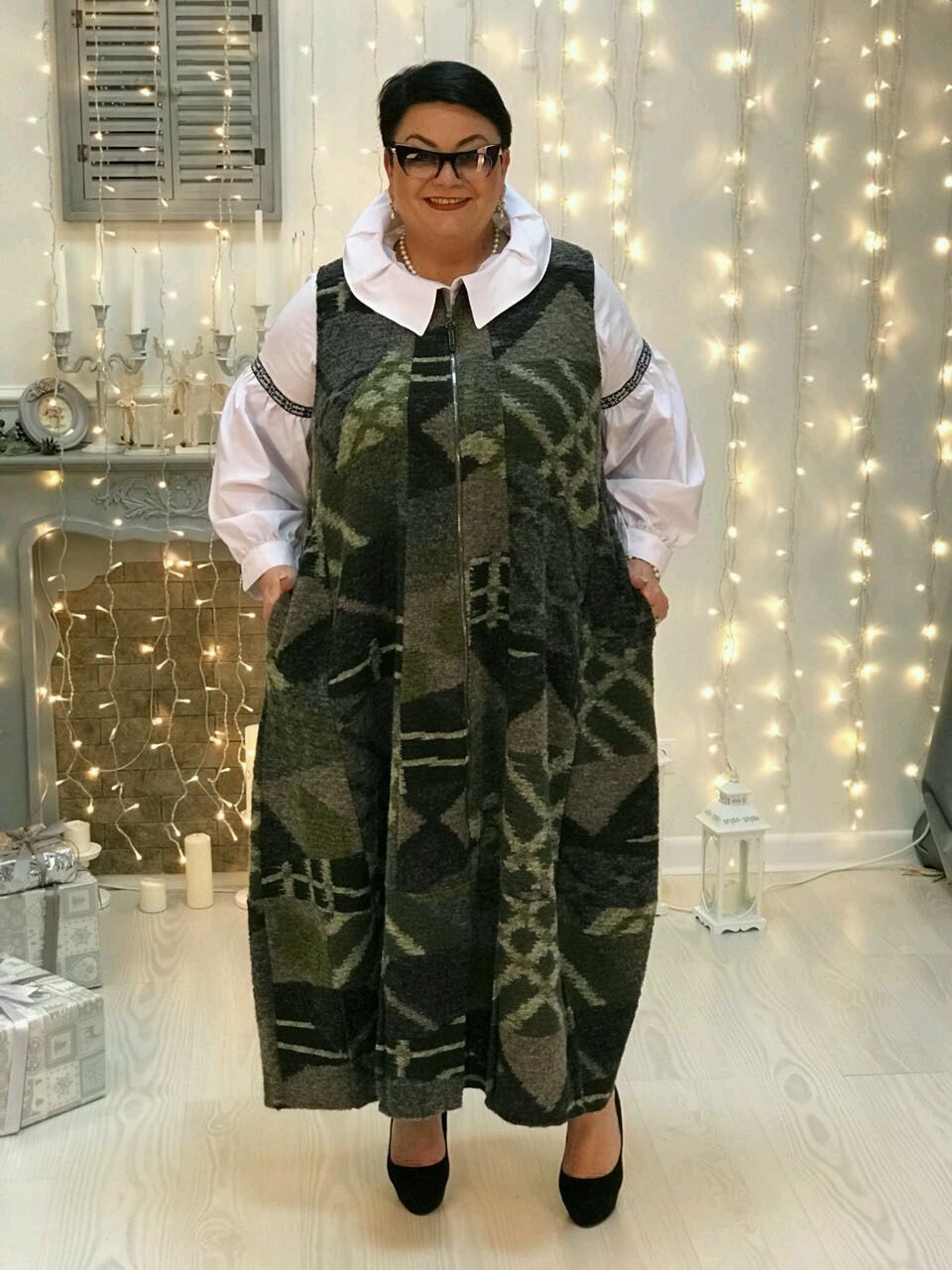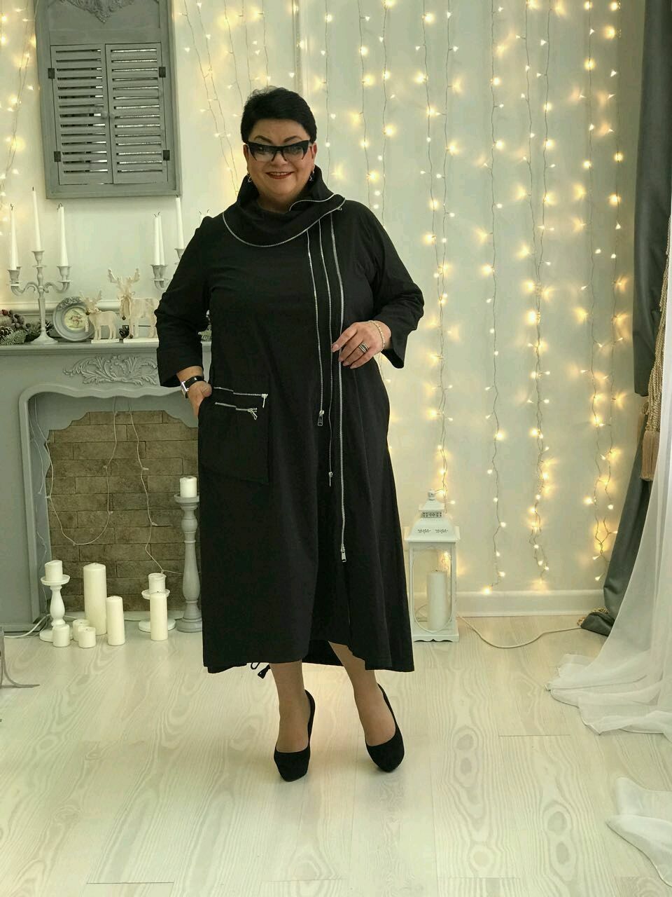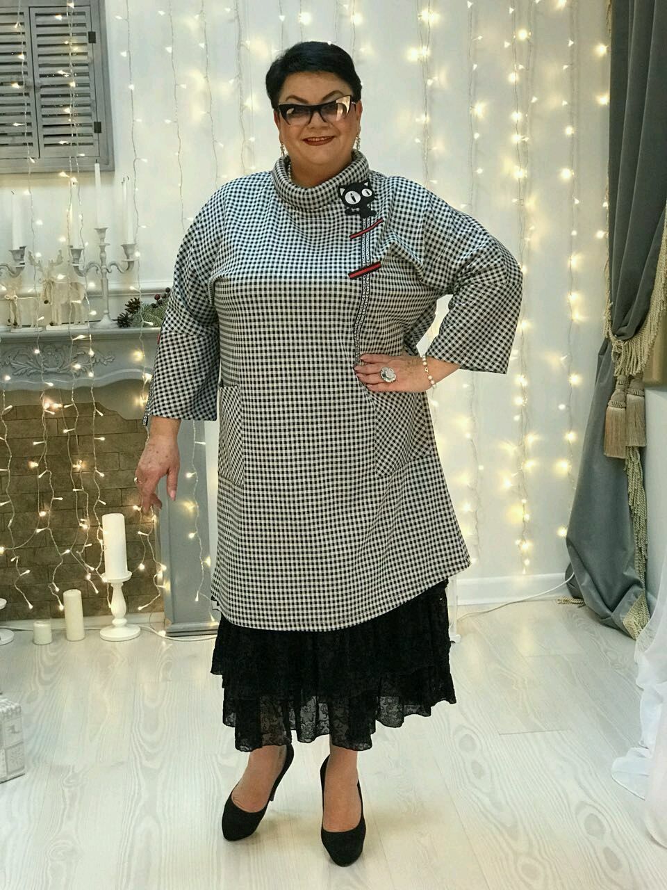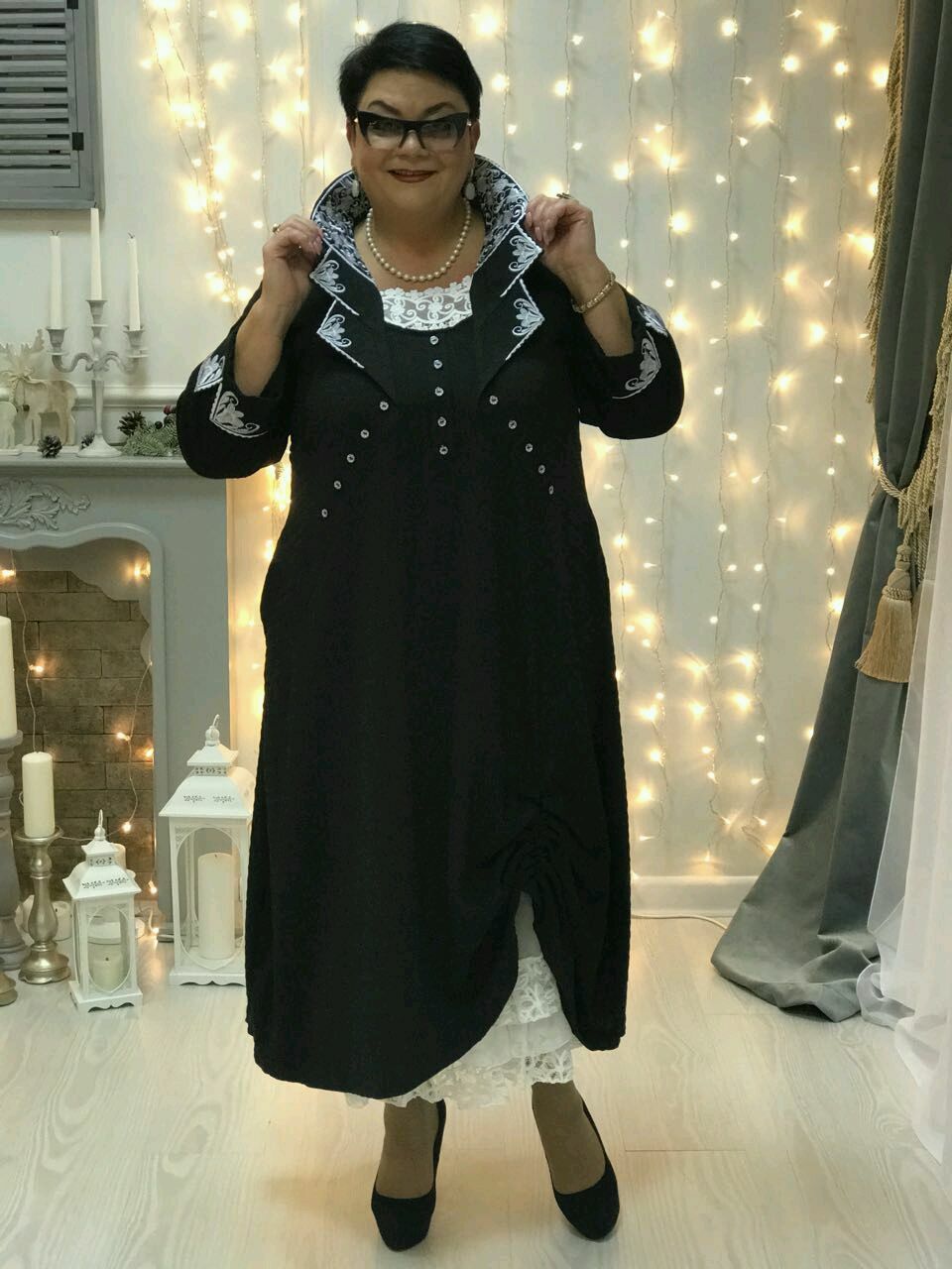 Предлагаемые образы придутся по душе женщинам в теле. Свободного кроя платья гармонично смотрятся и скрывают возможные недостатки телосложения.