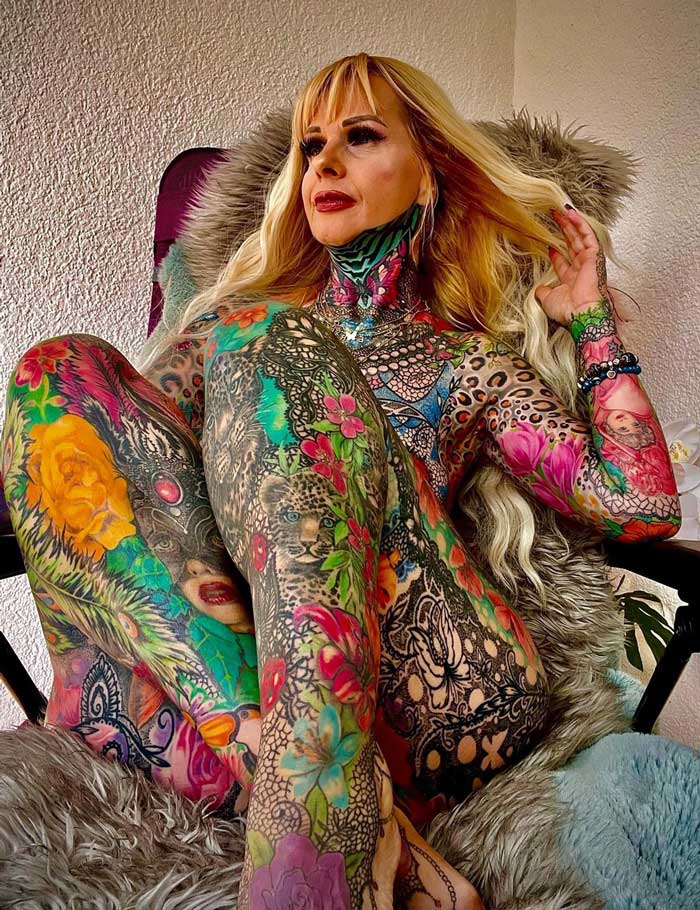 💸 С тех пор она потратила около 30 000 евро на татуировки, превратив своё тело в настоящее полотно искусства 🎨.