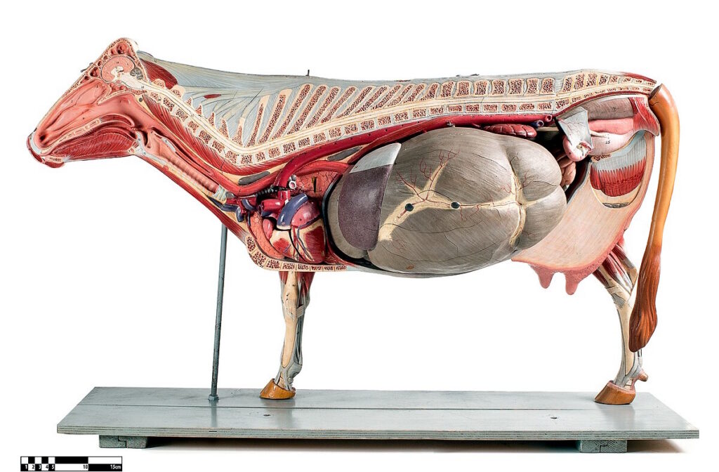 Начнем с вопроса номер один — почему оно расположено сзади, а не спереди коровы? Или не на животе, как у хрюшек или собак? Тут всё просто: оно сзади, потому что самой корове так удобно. Копытным нет никакой необходимости иметь вымя сверху. В отличие от приматов, они не держат своё потомство на ручках и не прикладывают к груди. Хорошо, но почему бы не расположить молочные железы на животе, как у большинства животных? Всё дело в анатомии.