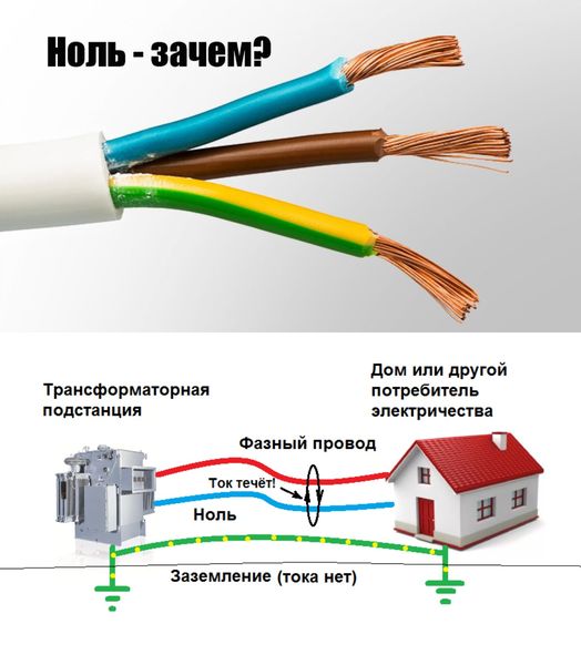 Говоря простым языком, ток не только должен прийти к вашему прибору, ему ещё нужно куда-то вернуться обратно. Именно для этой цели возврата и служит нулевой провод.