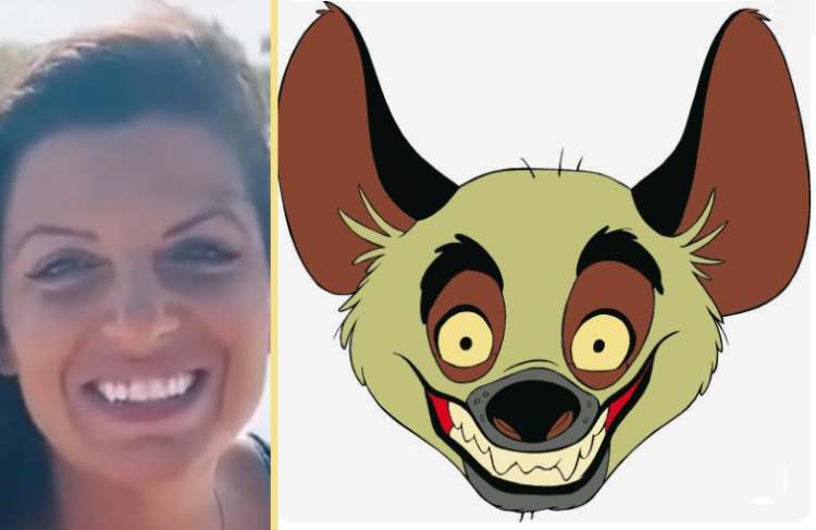 По мнению певицы, пропагандистка похожа на гиену из мультика «Король лев». У себя в соцсети певица разместила коллаж из фото Симоньян и мультяшной гиены, чтобы подтвердить свое мнение.