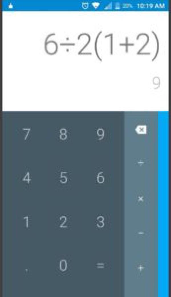 А вот бездушные калькуляторы решают пример по-другому. Они тоже первым делом выполняют действие в скобках, зато потом умножение и деление делают в строгом порядке — слева направо. Так какой же ответ правильный