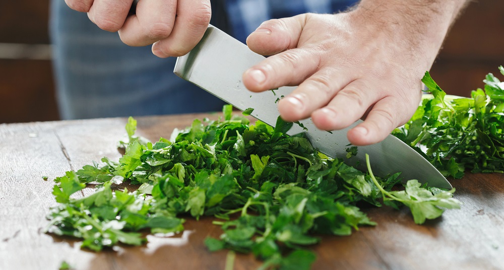 Теперь нарежь зелень. Подойдет петрушка, кинза или укроп.