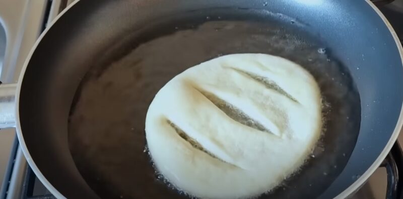 В сковороде разогреваем растительное масло, обжариваем булочки с каждой стороны на среднем огне до золотистого цвета.