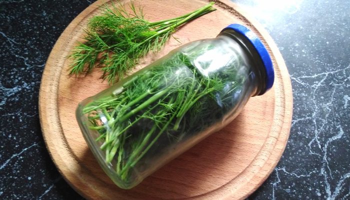 Нужно для начала почистить укроп и хорошенько промыть. Обратите внимание, зелень должна быть абсолютно сухой, не мокрой.