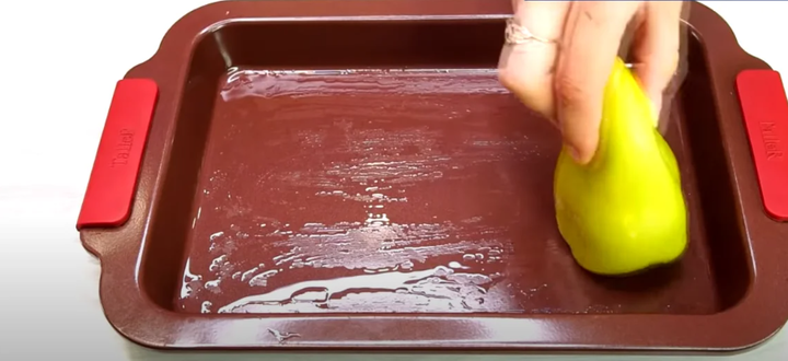 Ставим перец на противень (не на бок, и не как обычно, не бойтесь ничего не вытечет).