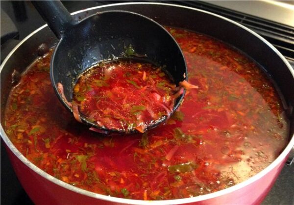 Если не любите сало в супах, не добавляйте его. Если не любите кислый борщ, не добавляйте маринованные помидоры или добавьте сахар. Свекольный цвет борщу можно придать, если добавлять тушенную свеклу с остальными овощами почти в конце готовки.