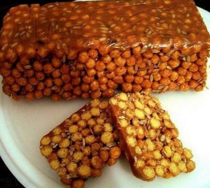 Рецепт очень прост и содержит всего три ингредиента: кукурузные палочки, ириски и сливочное масло. Но несмотря на свою простоту у него есть один нюанс — какие ириски использовать.
