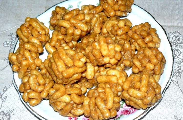 А теперь вернемся к нашему десерту из кукурузных палочек с ирисками. Мы всегда придавали ему форму колбаски, как и шоколадному десерту из печенья (ленивый вариант пирожного «картошка»). Так на мой взгляд удобнее его есть, но некоторые предпочитают формировать шарики, либо в виде торта — это на ваш вкус.