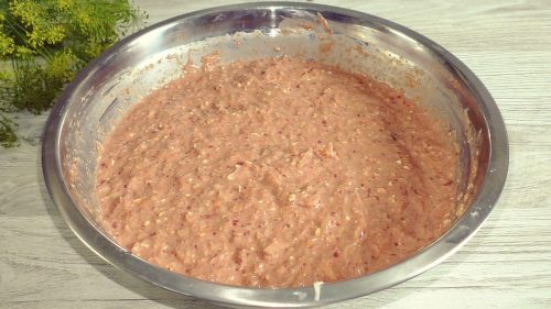 Солим, перчим по вкусу и даём массе немного отдохнуть (минут 10).