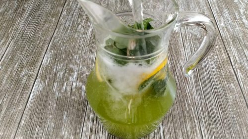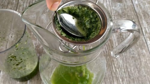 В кувшин через сито процеживаем полученную кашицу. В итоге мы получаем концентрат из мяты и лимона.