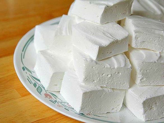 3. Получившуюся массу перекладываем в форму (лучше выбрать прямоугольную форму) и ставим в холодильник не менее чем на 3 часа. По прошествии этого времени можно готовый зефир резать на кусочки. Вместо ножа можно использовать формочки для печенья, тогда ваш зефир будет хорошей формы.