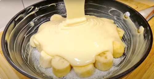 Пошаговый процесс приготовления потрясающего воздушного пирога с бананами на сковородке: