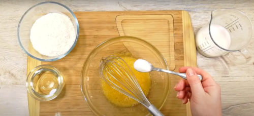 Разбиваем яйцо в мисочку, добавляем щепотку соли.