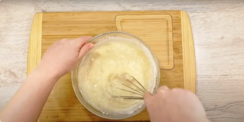 Теперь мучную смесь всыпаем в жидкую массу и быстренько вымешиваем тесто. Делаем это не долго, до избавления от комочков.