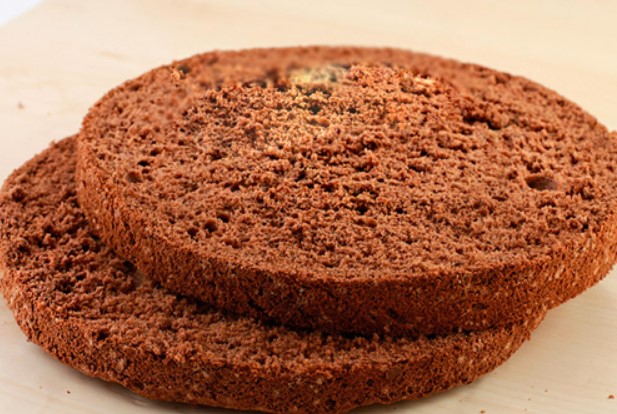Остужаем бисквиты и разрезаем на 2 коржа.