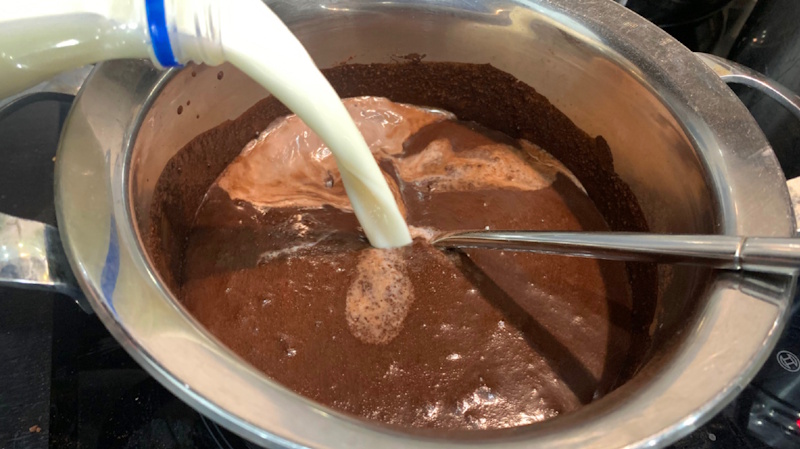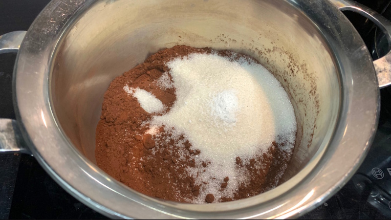 Обязательно попробуйте какао в процессе приготовления, чтобы скорректировать количество сахара и какао-порошка по своему вкусу.