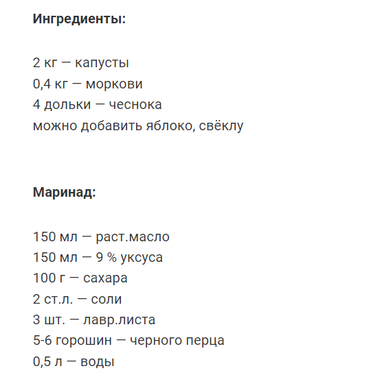 Это просто невероятный рецепт. Готовлю капусту только по нему и не жалею. Нужно нашинковать сам плод, потом натереть морковку, порезать чеснок и все это плотно утрамбовать в банке.