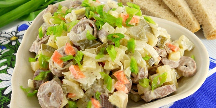 Поздравляем, салат с куриными сердечками готов, можете добавлять в него любимые специи. Приятного аппетита!