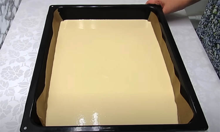 Вылейте тесто на противень, покрытый пергаментом, и выпекайте 25 минут.
