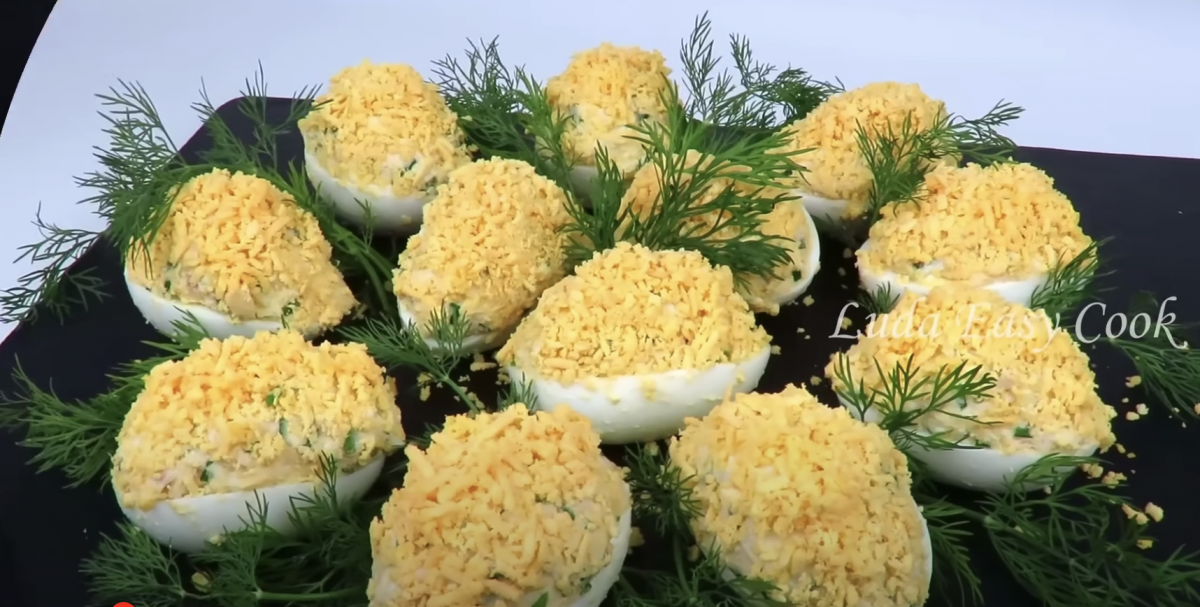 Изумительная закуска на праздник. Фаршированные яйца с салатом Мимоза, которые восхитят любого.