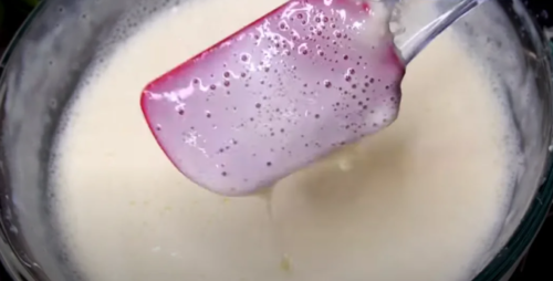 Поместите творожную массу на водяную баню и все время мешайте, пока творог не расплавится, и масса не станет жидкой, на это уйдет примерно десять минут.