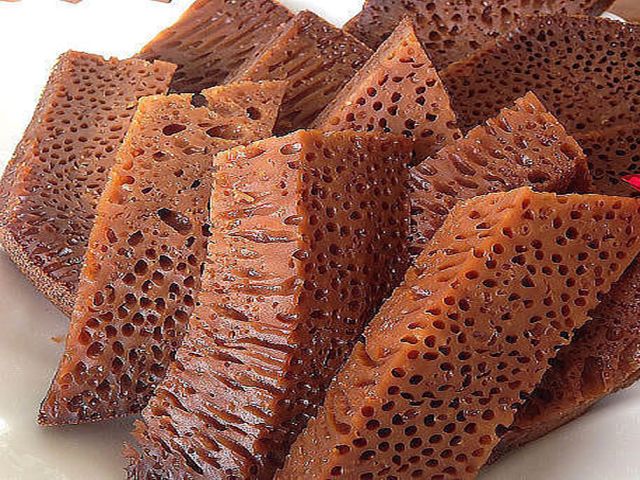 И вот теперь можно посмотреть, что же у нас получилось. Я уже несколько раз готовила этот десерт, но каждый раз разрезаю его с замиранием сердца — получилась или нет пористая структура нашей «бабки нягры».