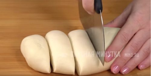 Для лавашницы диаметром 36 см режем тесто на пять кусков. Если у вас сковородка меньшего размера, то режем на 10-12 кусков.