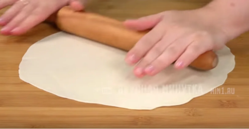 Все куски по очереди обминаем и формируем из них лепешки небольшого размера. После каждую лепешку раскатываем до самого тонкого состояния, на которое вы способны.