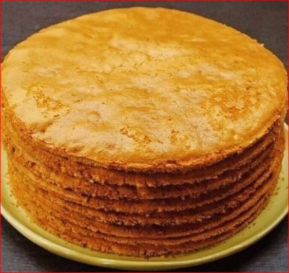 Таким образом выпекаем все коржи. У меня получилась вот такая стопка!
