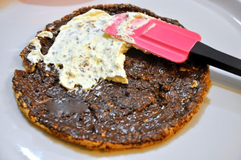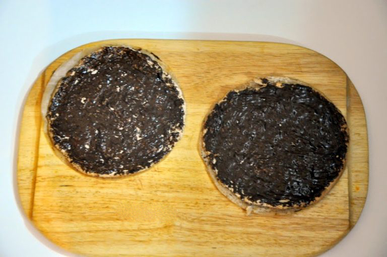 6. С помощью кисточки смажьте пять из шести коржей растопленным на водяной бане тёмным шоколадом (80 г.) и подождите, пока они остынут.